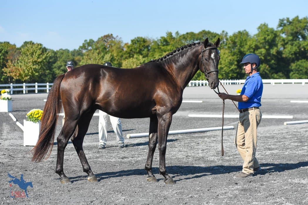 Second place in the 3-year-old fillies division went to another off-the-track Thoroughbred, Katie Domino’s Easy Cheesy (Hunt Crossing x Deputy Lady), who scored 84.28 overall. Elizabeth Callahan’s Rheinland Pfalz-Saar Bonarie (Bliss MF x Avalon) placed third on a cumulative score of 84.03.