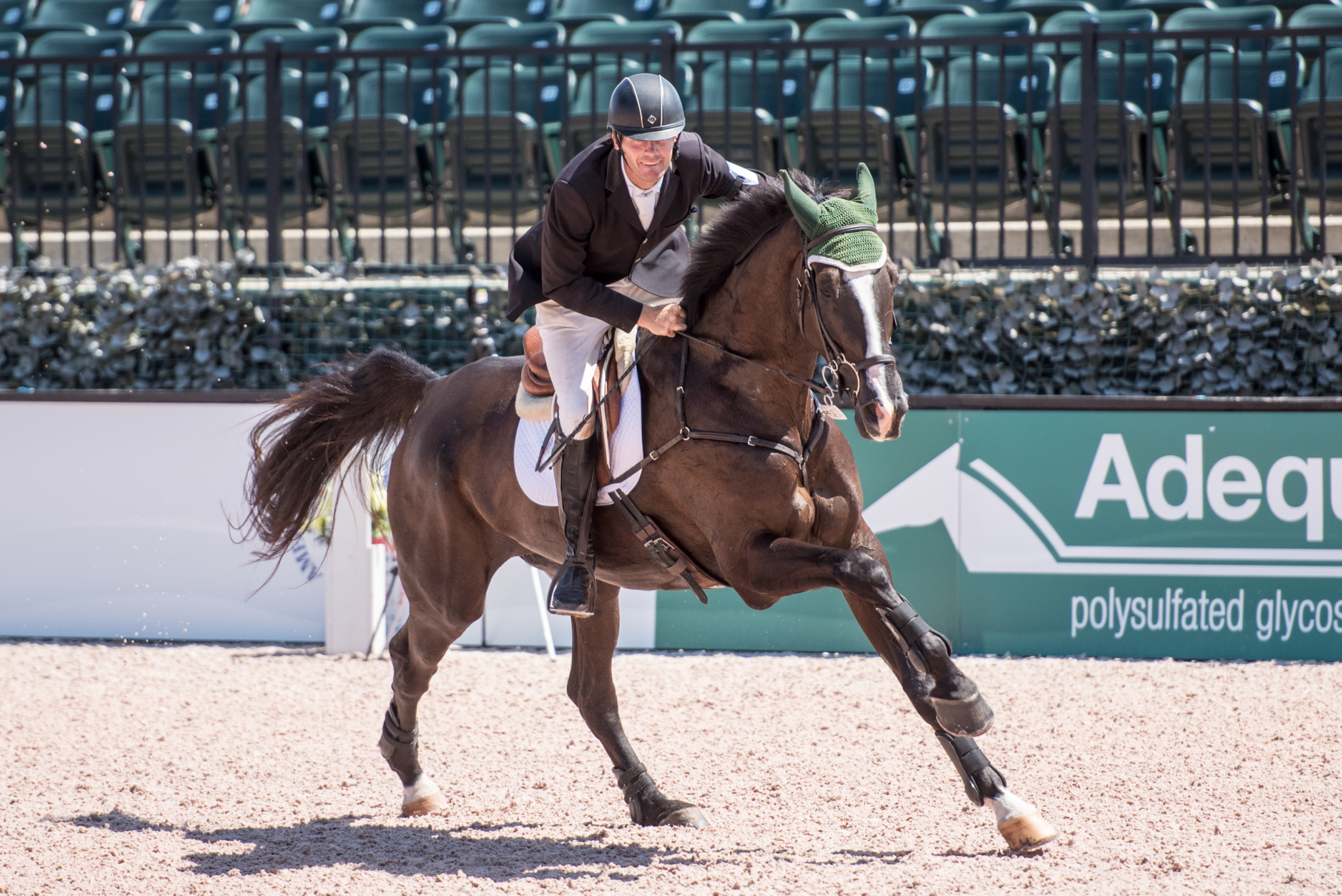 Doug Payne and Debi Crowley’s Vandiver (Windfall II x Visions of Grandeur) have won a 1.30-meter show jumping class in the George Morris Arena at TIEC, so they were primed and ready to put down another clear round. Unfortunately, the 12-year-old Trakehner just tapped the back rail of an oxer, in Payne’s words a “$15,000 rail,” dashing their hopes of winning.