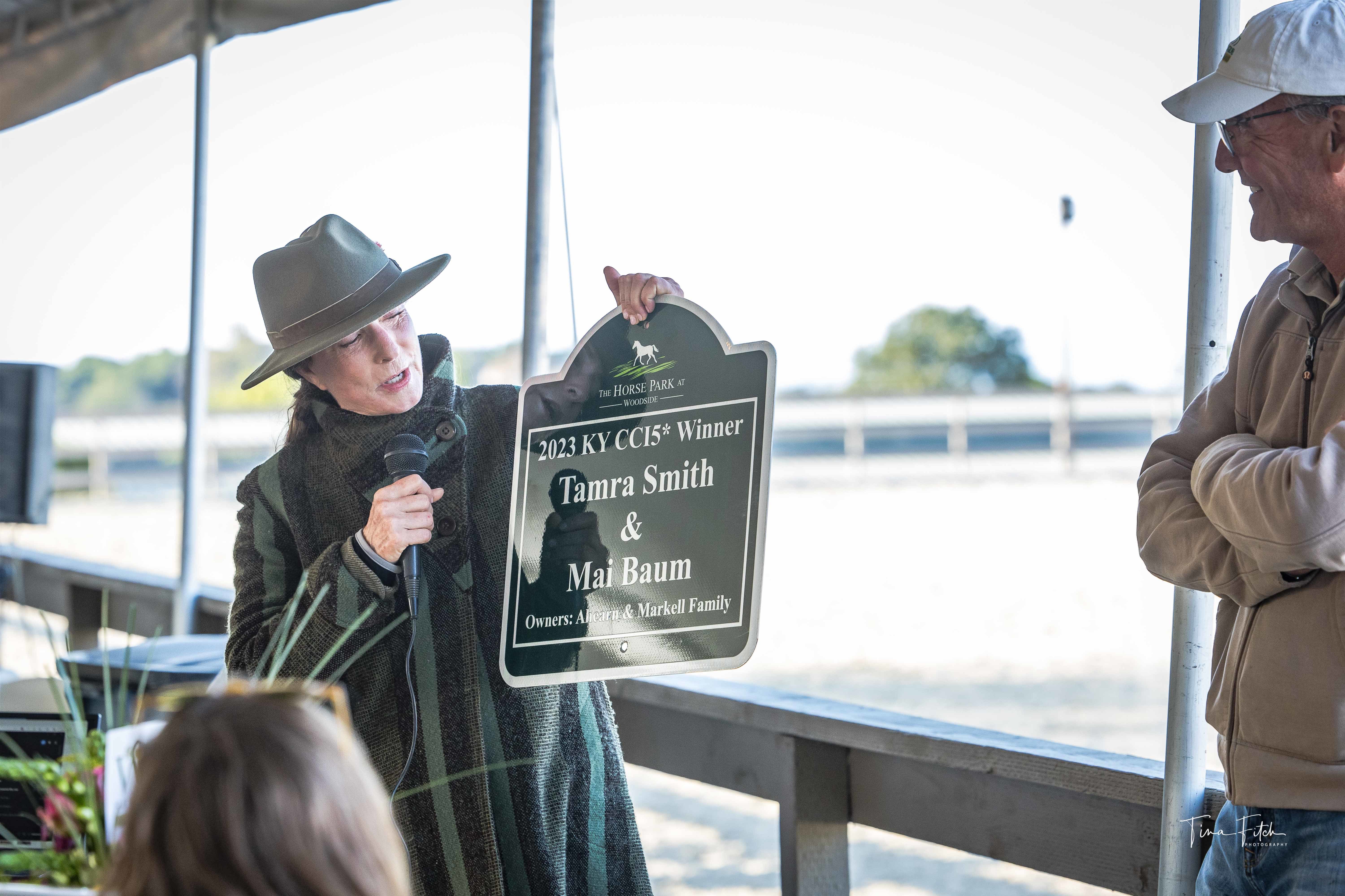 On the eve of competition on Thursday, organizers at the Woodside Horse Trials held a party in honor of both Tamie Smith’s historic win in the Kentucky five-star and the team of cross country builders led by Bert Wood that unveiled new courses at The Horse Park. Derek di Grazia designed the new Advanced and Intermediate tracks, with Wood designing the new tracks for Preliminary through Starter.