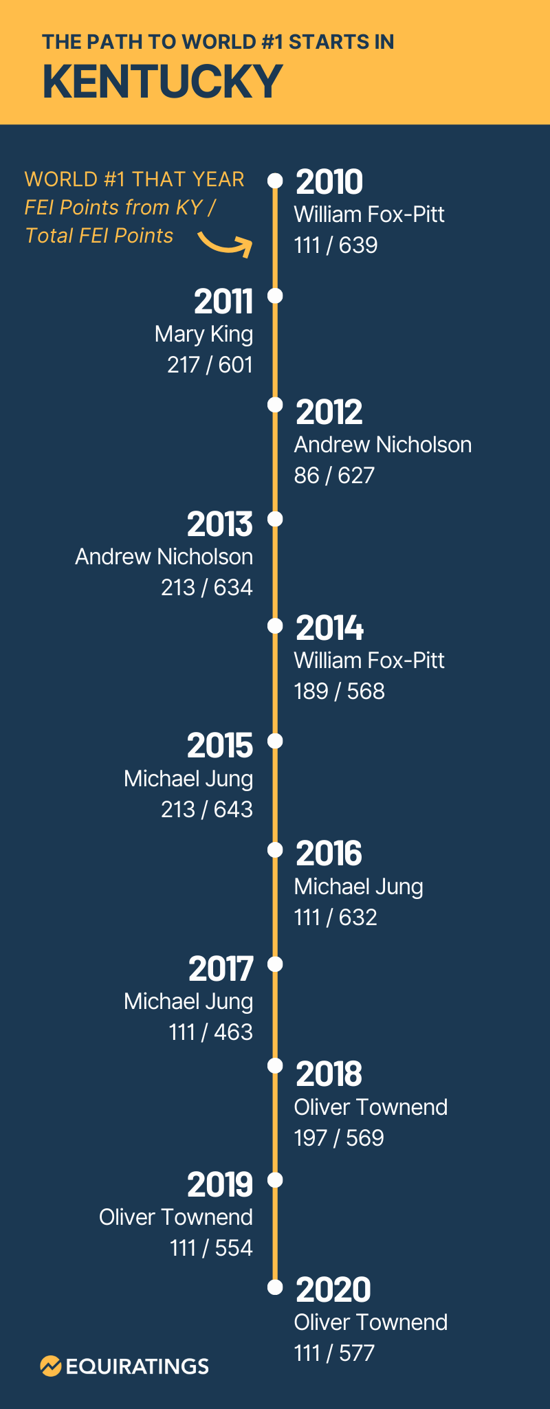 Every single World Number One of the last decade competed at Kentucky the year they were crowned the best in the world and, more importantly, they each relied on and counted their Kentucky result to take them to number one status. Quite literally, the famed Kentucky Horse Park has annually attracted and hosted the best event rider on the globe. Here’s how LRK3DE has made its mark at the top of the world.