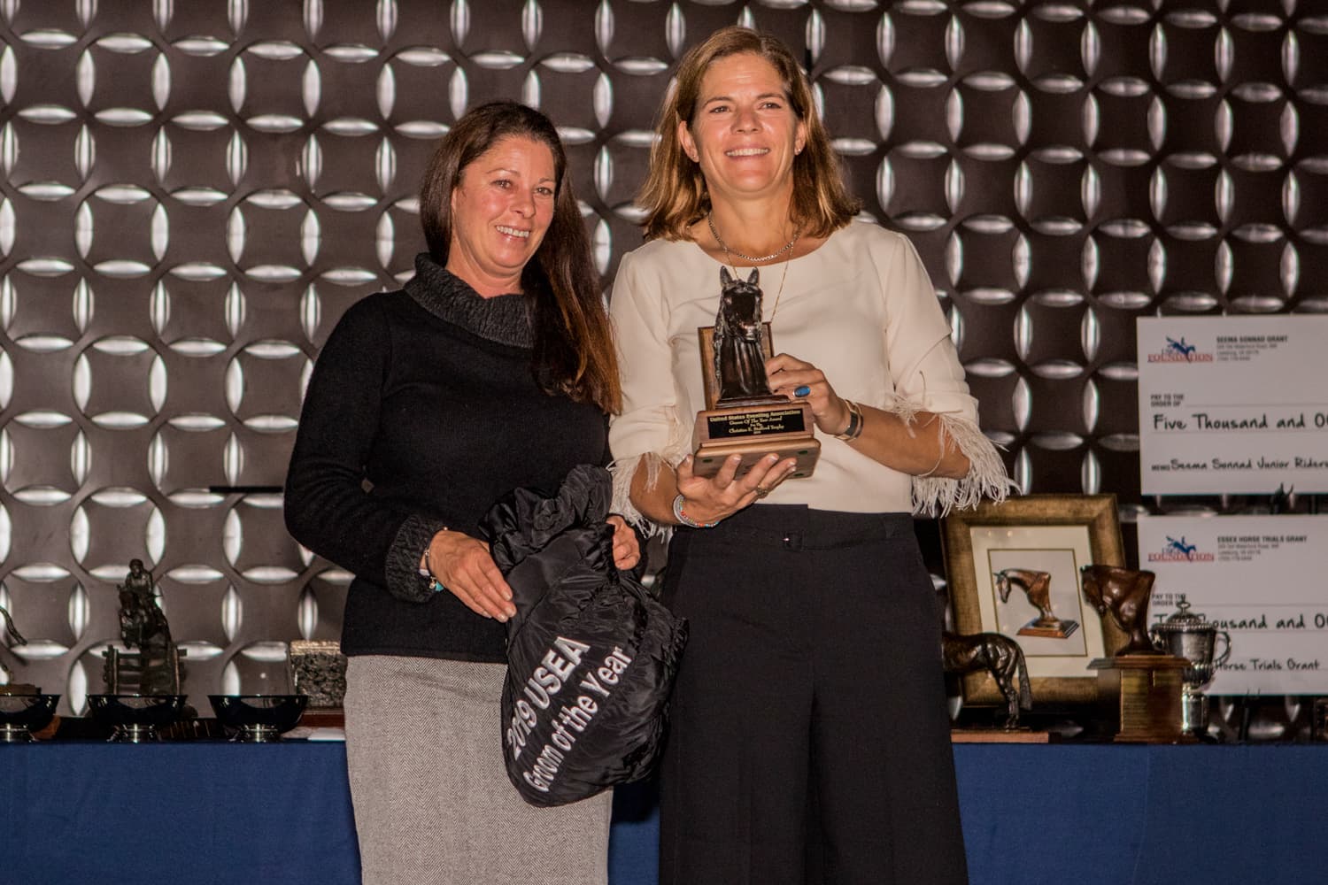 Sally Robertson (Ocala, Florida) was awarded the Christine E. Stafford Eventing Groom Award, which salutes the individuals responsible for the well-being of our horses. Working tirelessly behind the scenes, the groom is indispensable to both the competitor and above all, the horse. Robertson grooms for Lauren Kieffer.