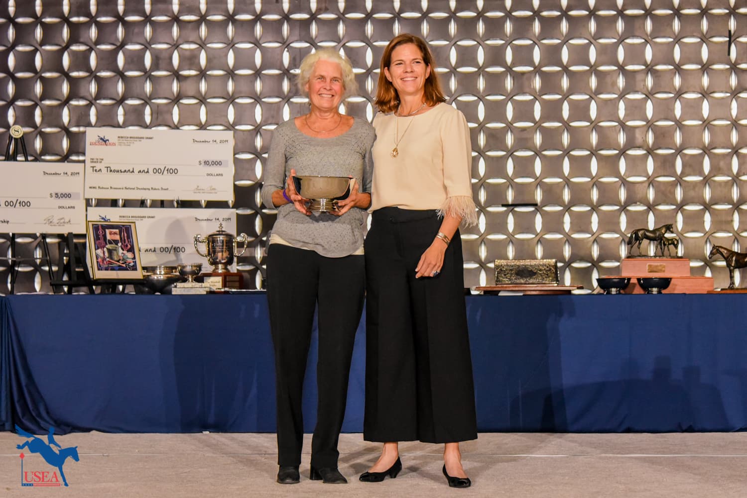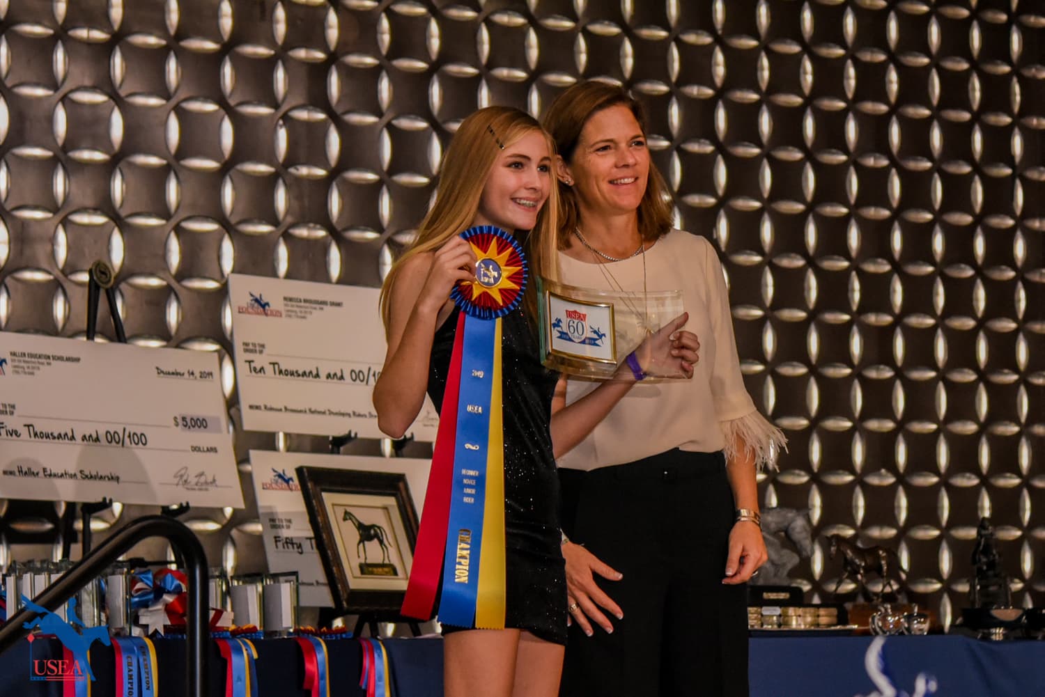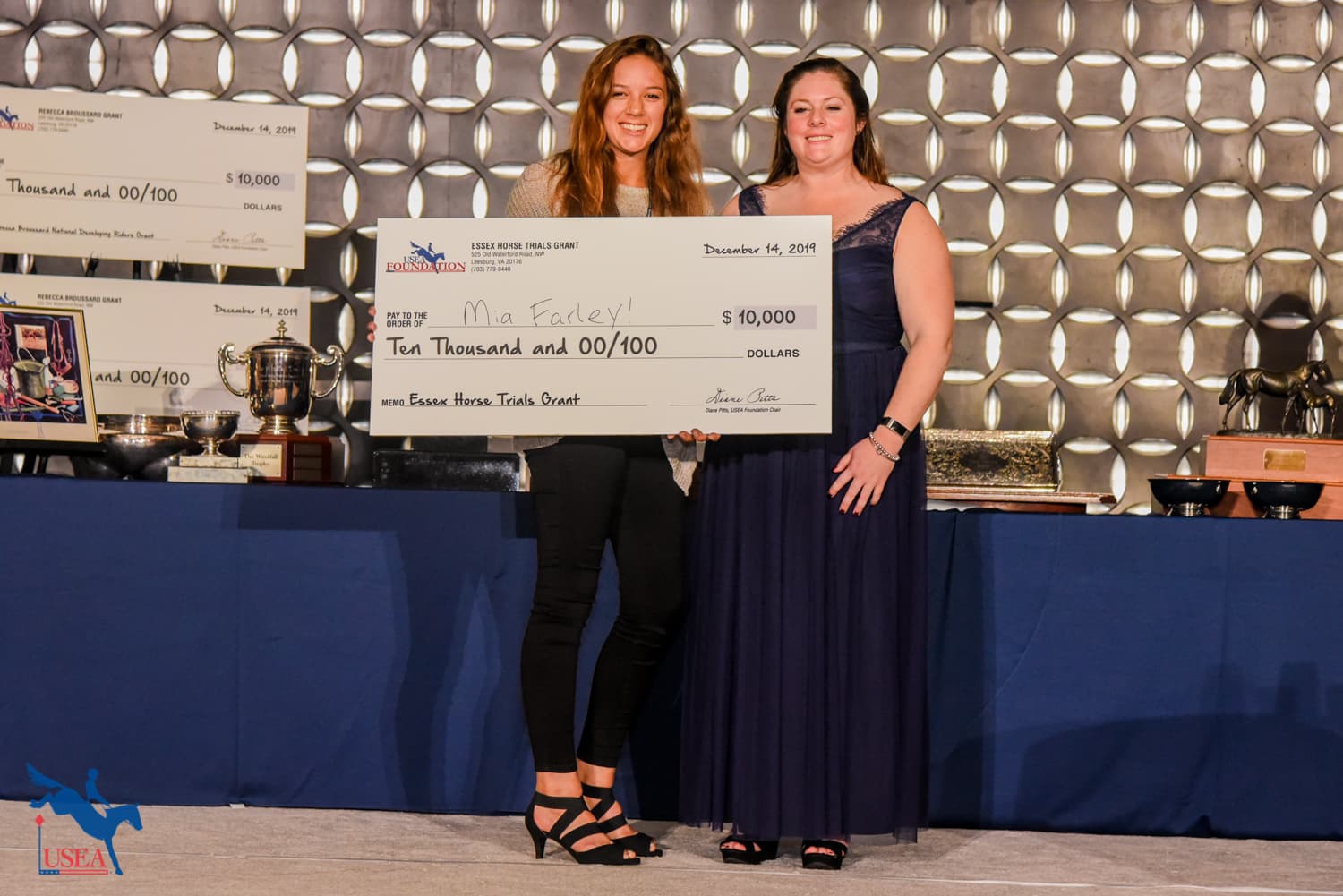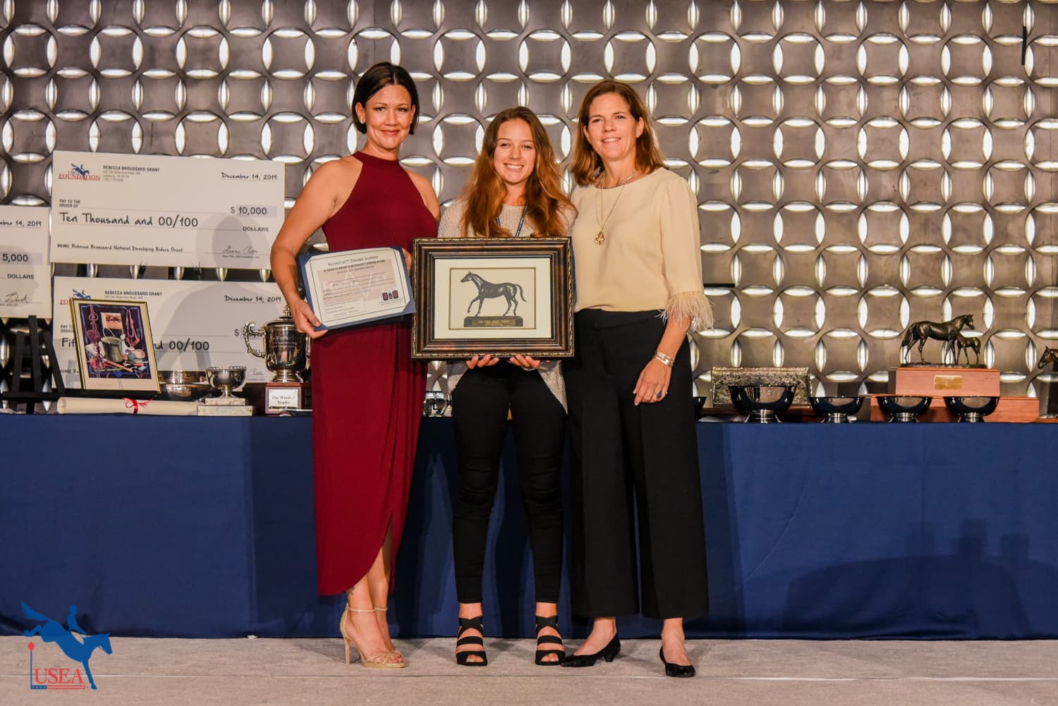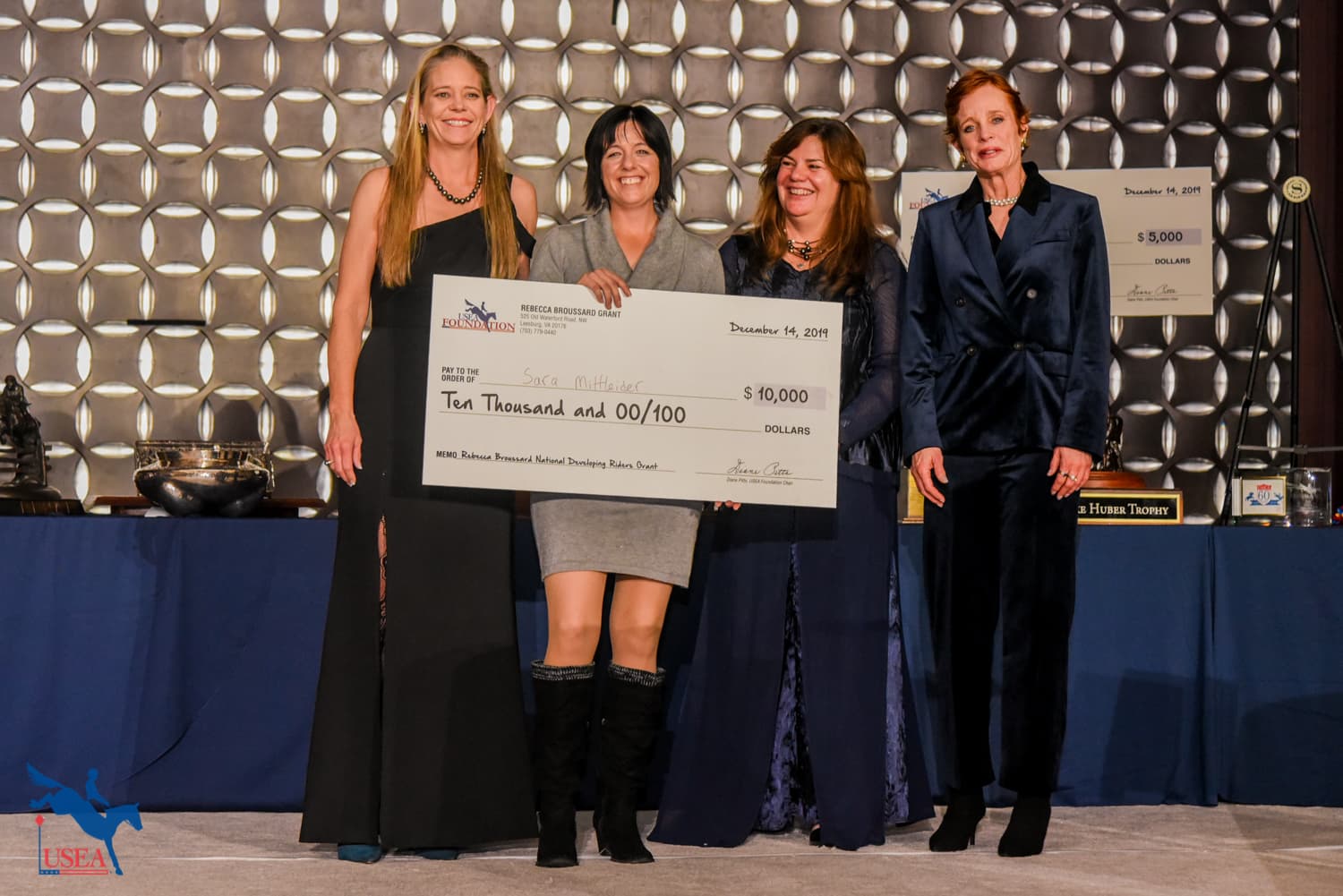 Sarah and Rebecca Broussard and Lou Leslie presented Sara Mittleider (Kuna, Idaho) with the $10,000 Rebecca Broussard National Developing Rider Grant and Andrea Baxter (Paso Robles, California) with the $50,000 Rebecca Broussard International Developing Rider Grant.