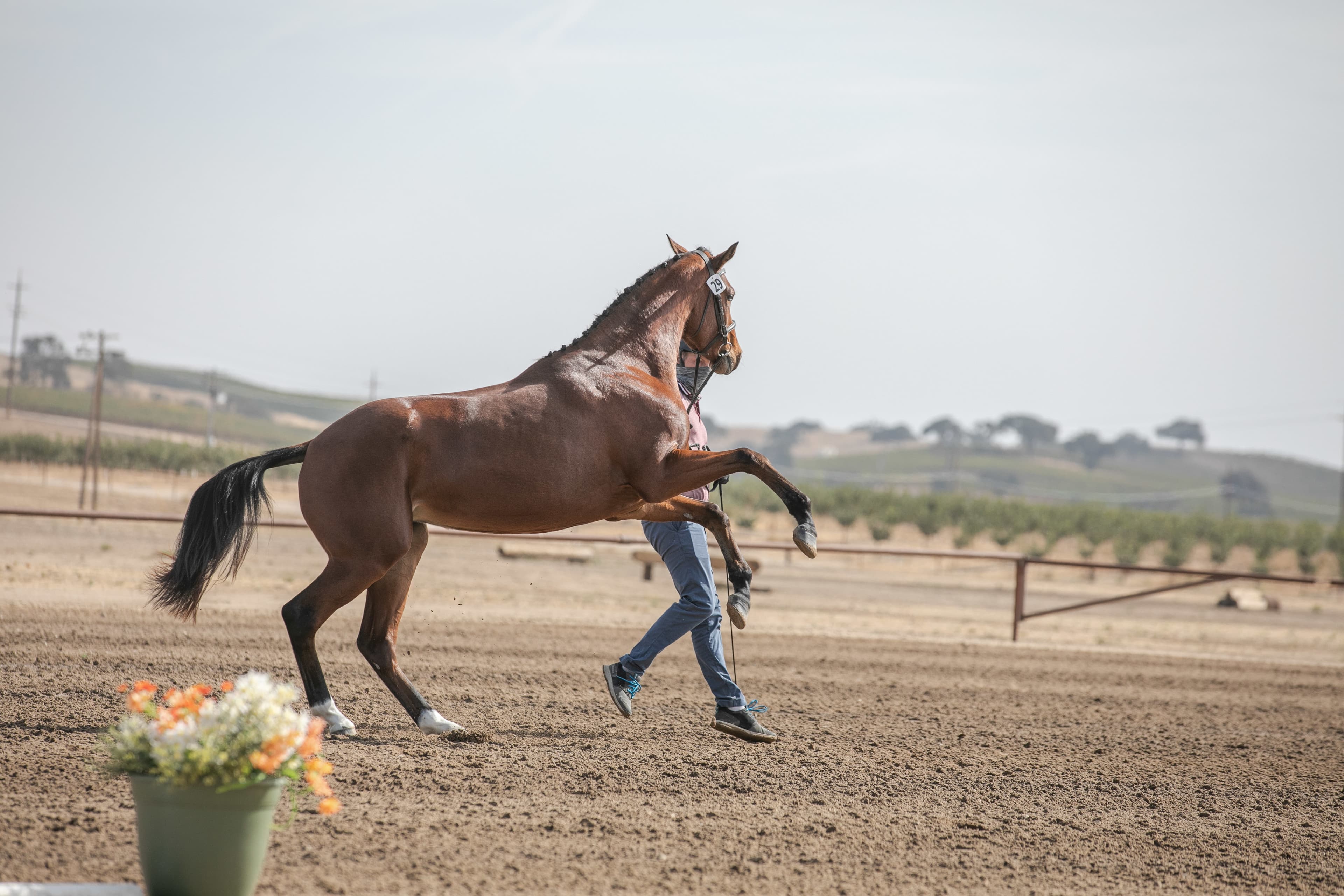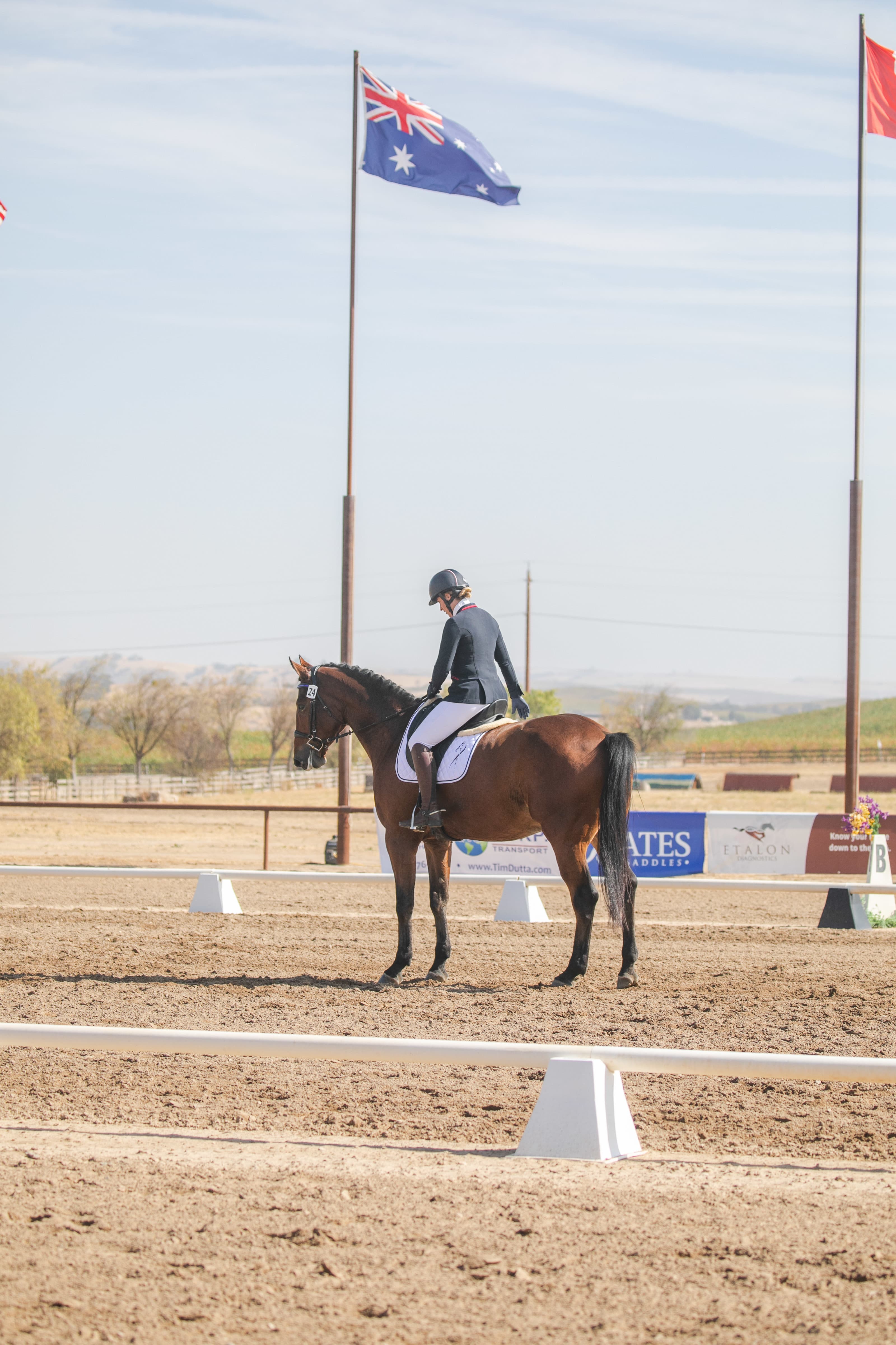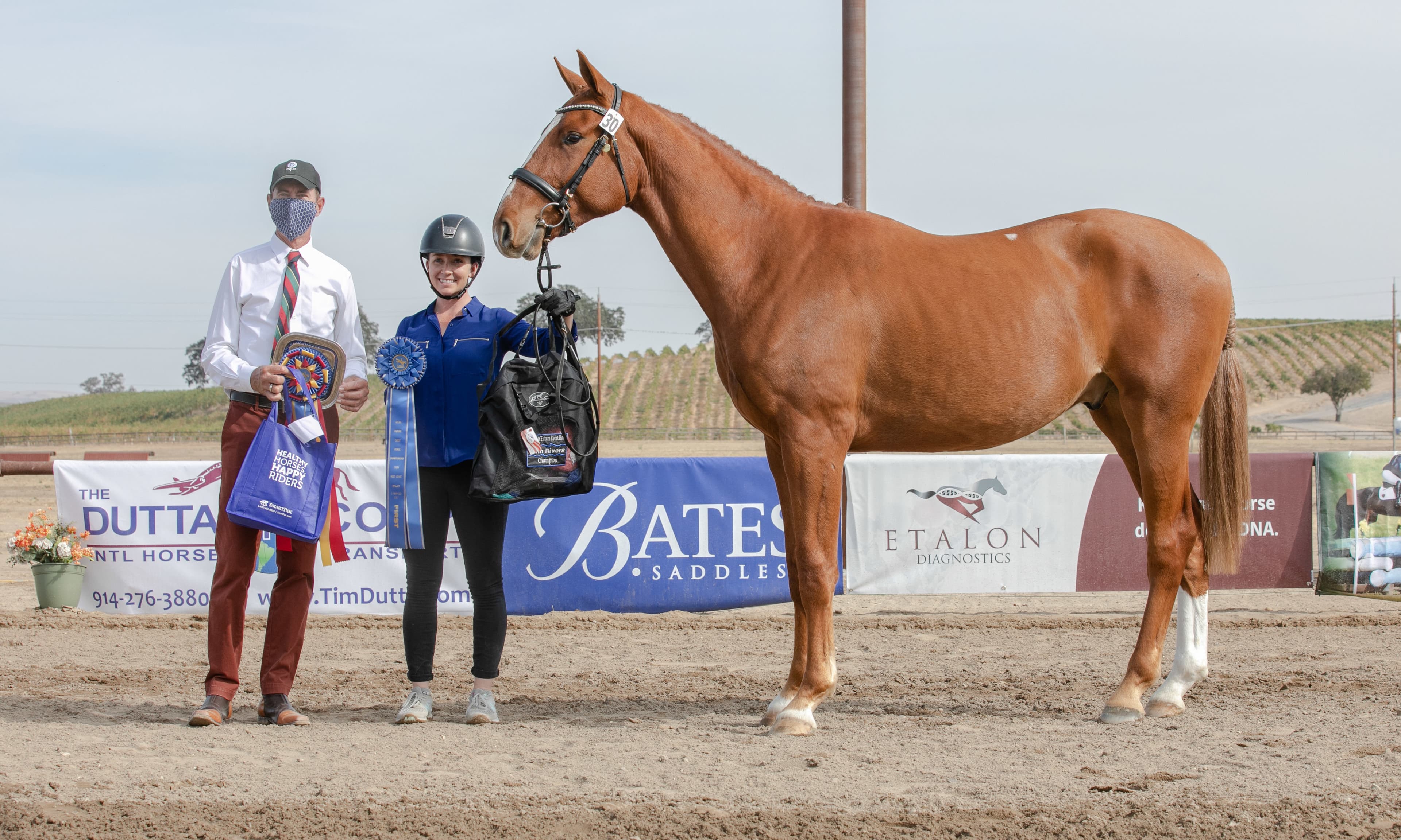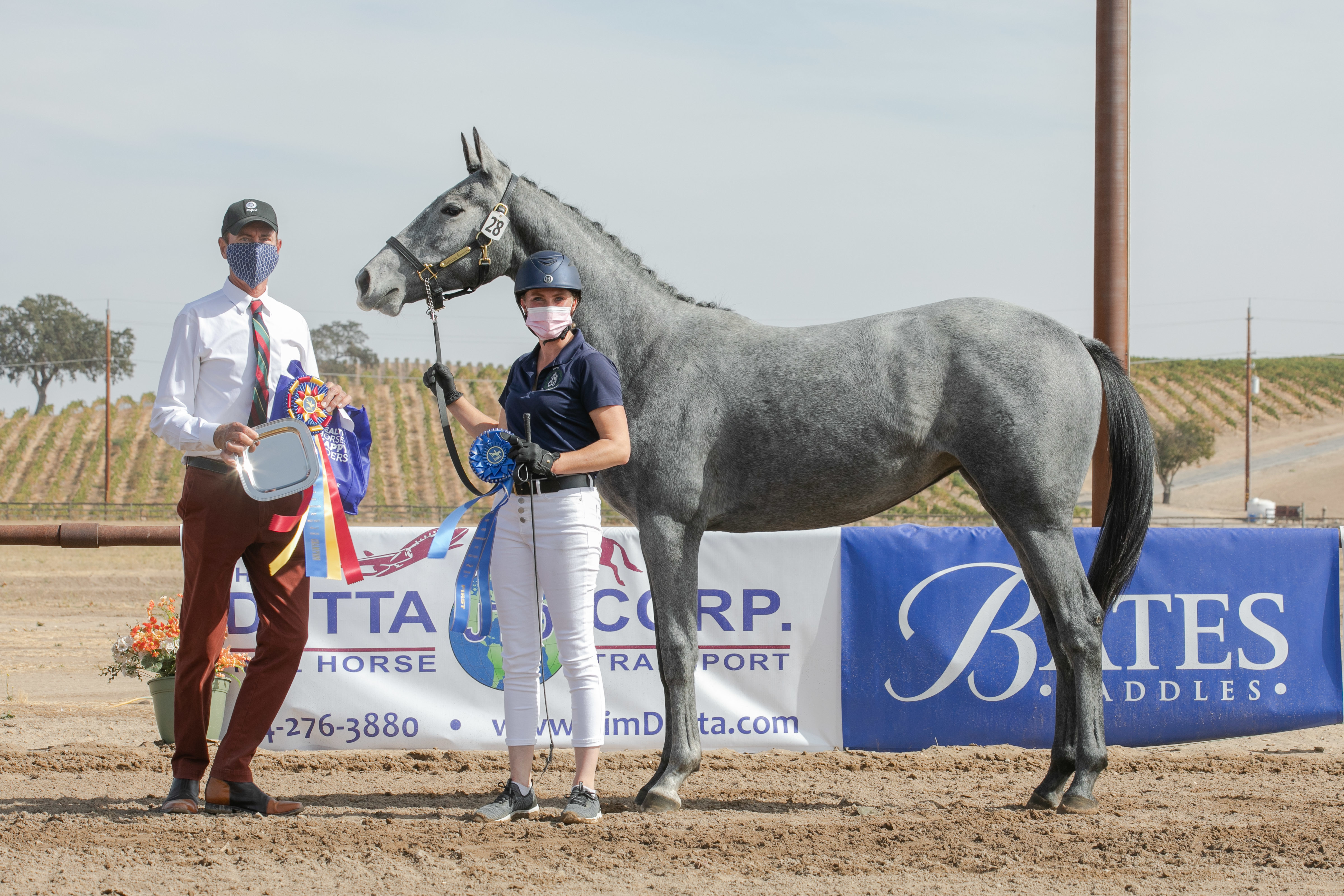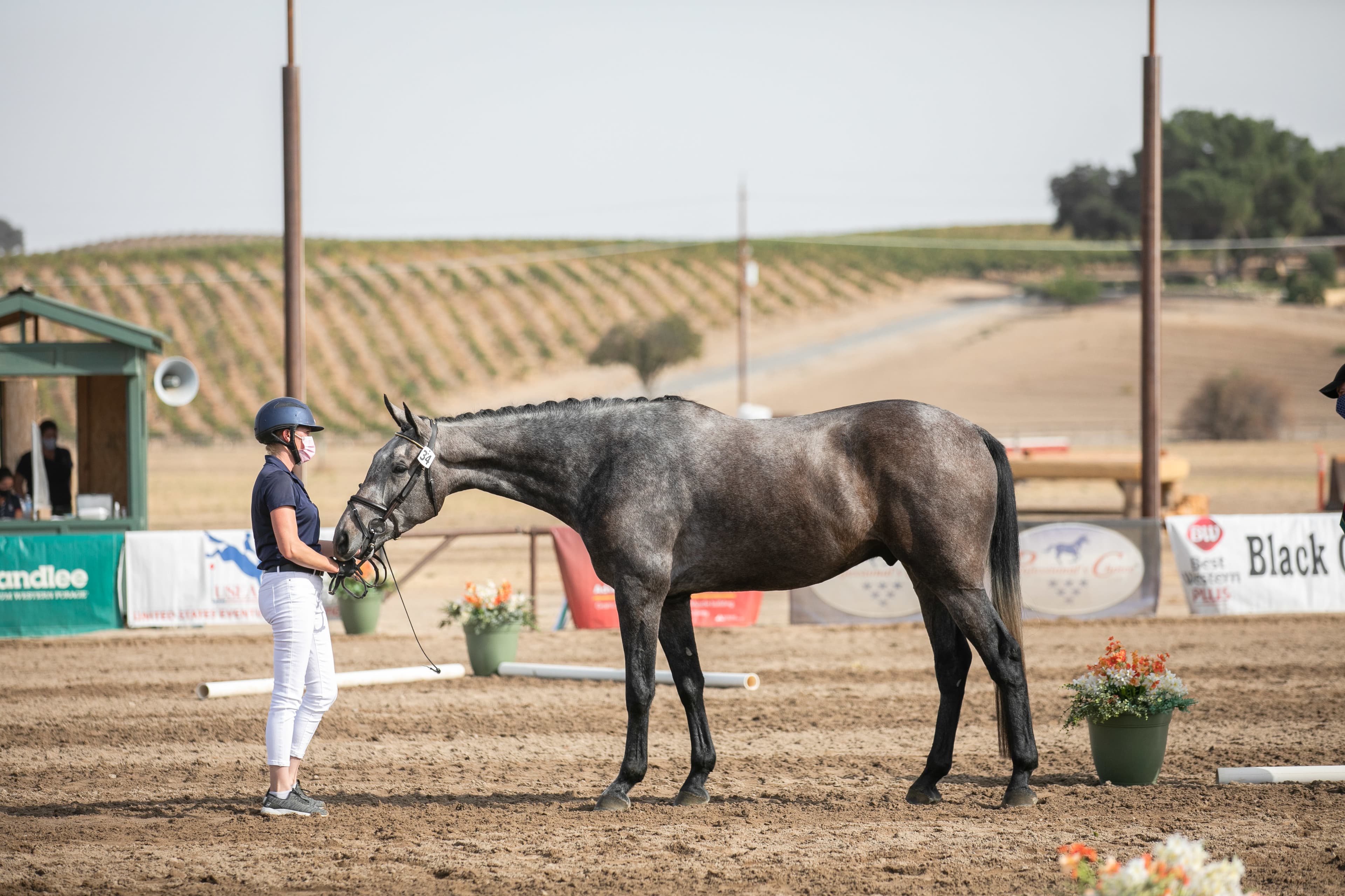 The turning leaves of the vineyards and the crisp, clear blue skies made for an excellent backdrop for the first day of The Dutta Corp. USEA Young Event Horse (YEH) and USEA Future Event Horse (FEH) West Coast Championships at Twin Rivers Ranch in Paso Robles, California. There are six divisions competing this weekend: The Dutta Corp. USEA YEH West Coast 5-year-old and 4-year-old Championships, and the USEA FEH West Coast 4-year-old, 3-year-old, 2-year-old, and Yearling Championships. All six divisions competed today, with the FEH 2-year-old and Yearling classes naming their champions. Peter Gray and Debbie Adams are working together to judge all the divisions.