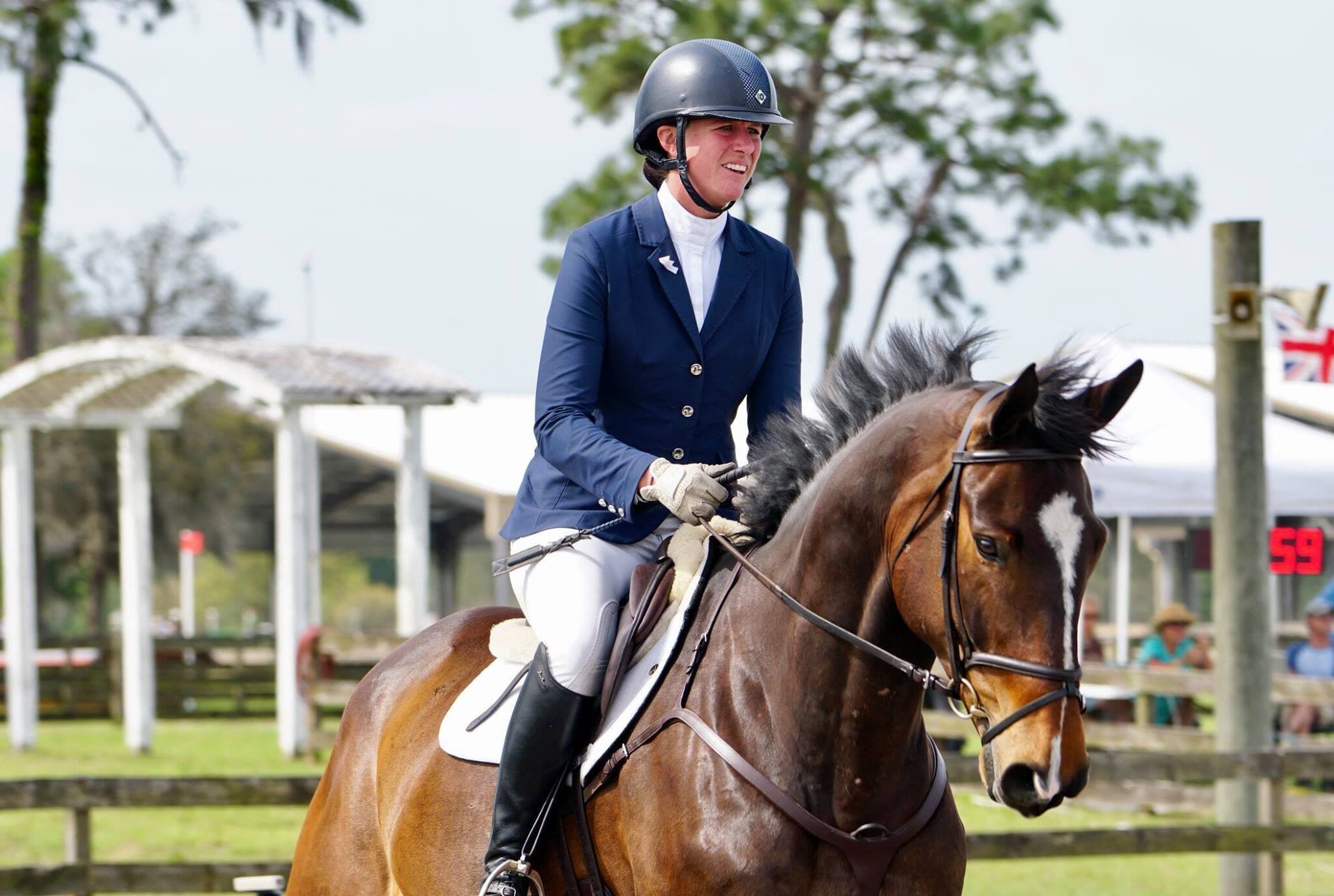 Apollo also had another good run at Training level at both Exmoor and Ocala International, finishing first and second. He is a very big horse and not as physically mature as the others. He has a huge stride, and he finds it difficult to condense or collect his canter while maintaining power, which is what makes the show jumping a more difficult phase for him. His schooling focuses on a lot of canter work to try to create a wider range of canters for him to work from. As he becomes more confident and physically able to go from a larger to smaller canter quickly, he also has to learn to go to that smaller canter and have power so he jumps the fences cleanly. Apollo finds the cross-country easier because he is able to jump out of the bigger stride that he is more comfortable in, so therefore he is able to find more scope.