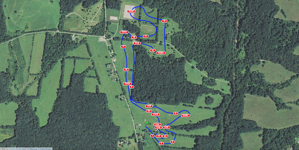 The CCI2* course spans 4,835 meters of the Fair Hill Natural Resource Management Area and has an optimum time set at 8 minutes 48 seconds. The course includes 24 numbered fences and a total of 34 jumping efforts. Click on the map below for a virtual coursewalk on CrossCountryApp.